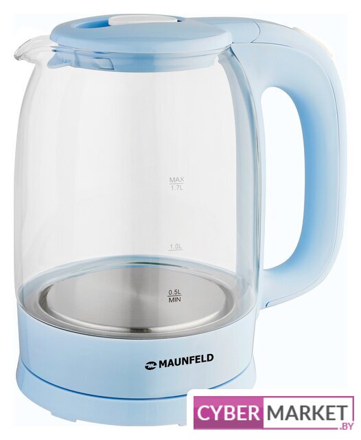 электрочайник, 2200 Вт, объем 1.7 л, подсветка, цвет голубой/черный