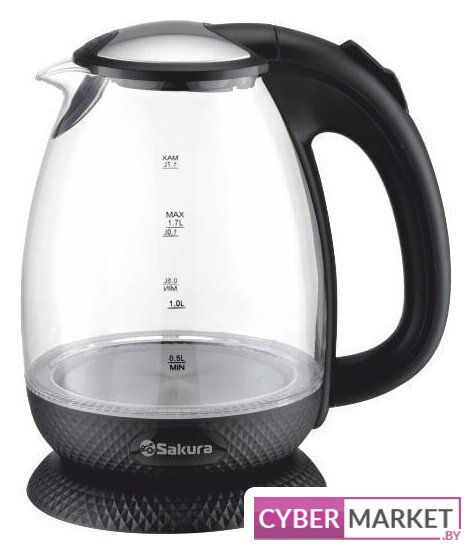 электрочайник, 2200 Вт, объем 1.7 л, подсветка, цвет голубой/черный
