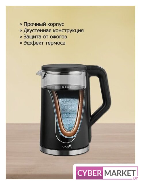 2200 Вт, объем 1.7 л, терморегулятор, цвет черный