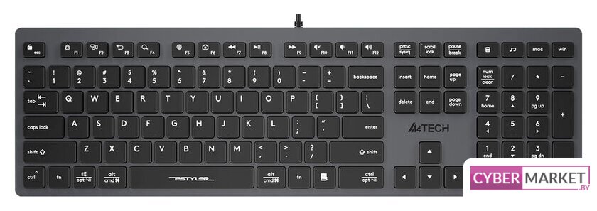 стандартная для ПК, проводная, USB, USB-хаб, цвет серый