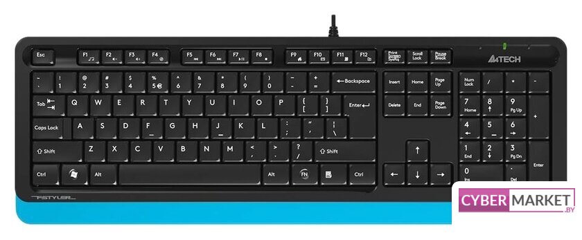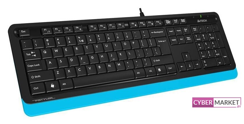 стандартная для ПК, мембранная, пластик, интерфейс подключения - USB, влагозащита, цвет голубой/черный