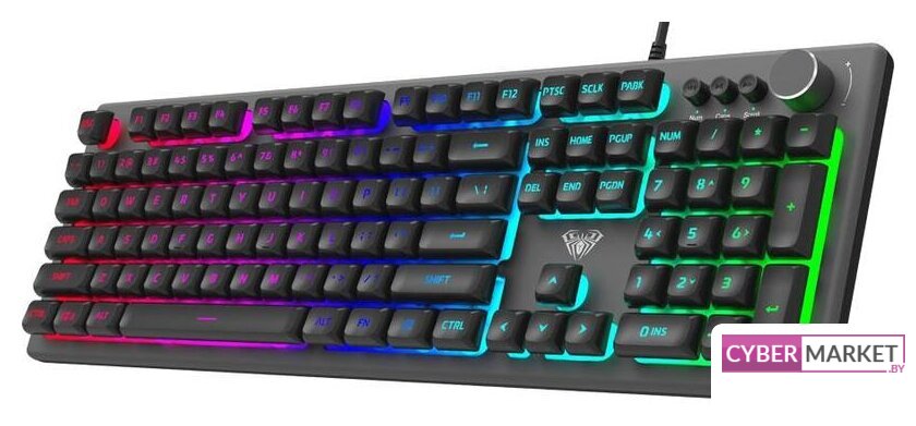 игровая для ПК, мембранная, пластик, интерфейс подключения - USB, подсветка, влагозащита, цвет черный