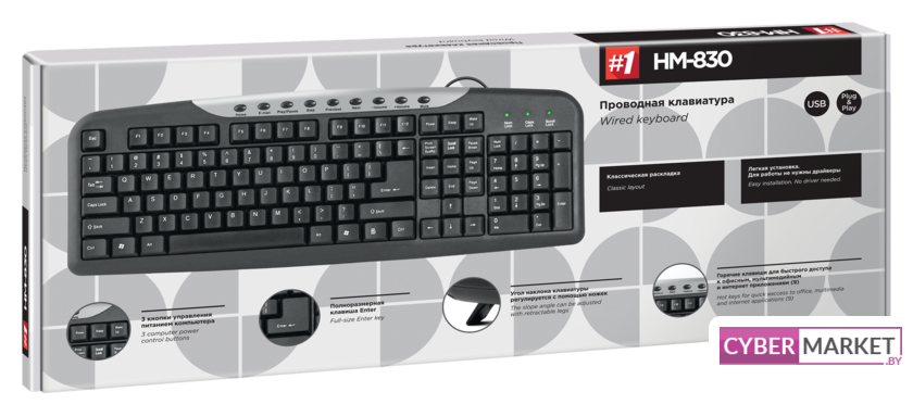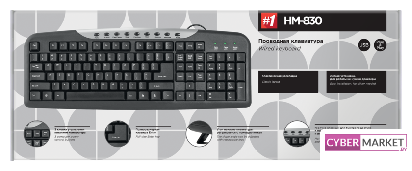 стандартная для ПК, проводная, USB, влагозащита, цвет черный