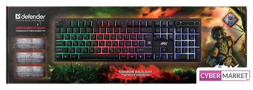 игровая для ПК, USB, подсветка, влагозащита, цвет черный