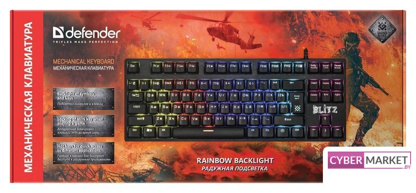 игровая для ПК, механическая, Outemu Red, ход линейный, пластик, интерфейс подключения - USB, цвет черный