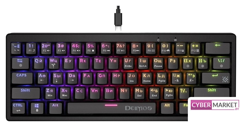 игровая для ПК, мембранная, металлическое основание, интерфейс подключения - USB, подсветка, цвет черный