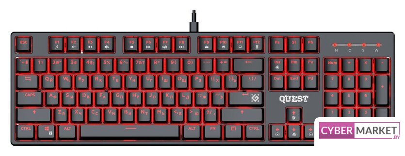 игровая для ПК, механическая, Outemu Red, ход линейный/тихие, пластик, интерфейс подключения - USB-A, цвет черный