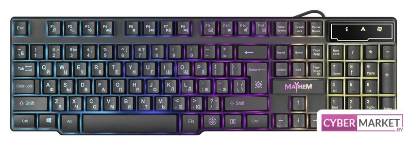 игровая для ПК, мембранная, пластик, интерфейс подключения - USB, подсветка, цвет черный