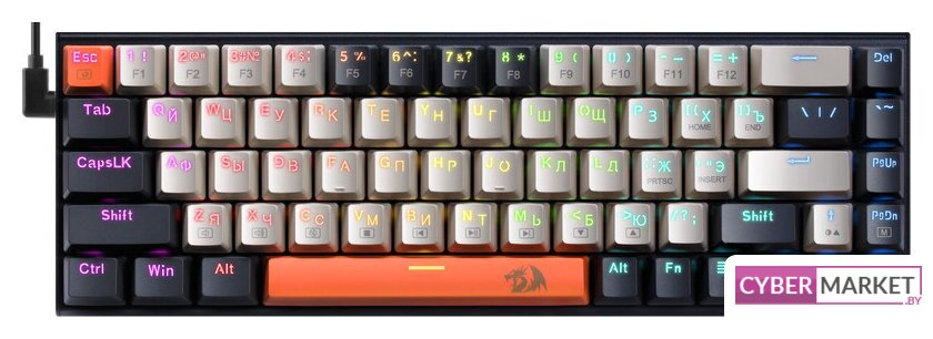 игровая для ПК, механическая, Outemu Brown, пластик, интерфейс подключения - USB/радио/Bluetooth, подсветка, цвет черный