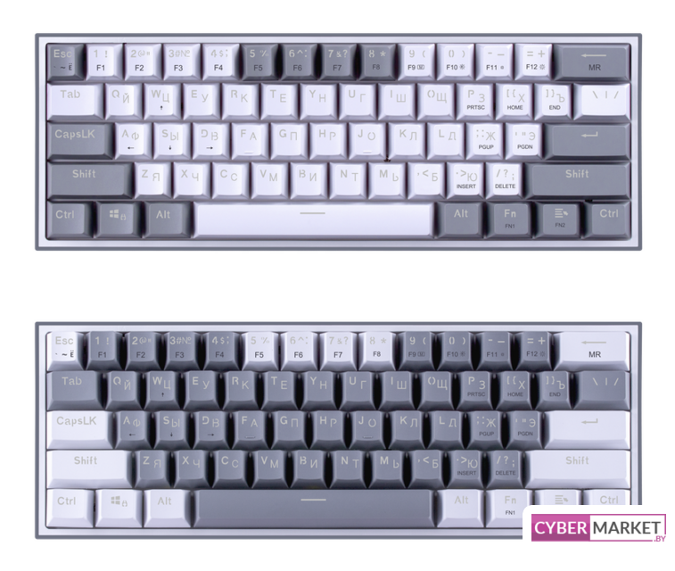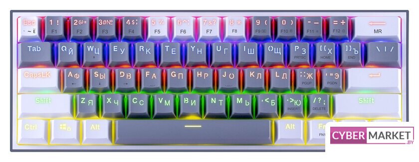 игровая для ПК, механическая, Outemu Red, ход линейный/тихие, пластик, интерфейс подключения - USB, подсветка, цвет белый/черный