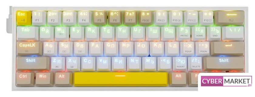 игровая для ПК, механическая, Outemu Red, ход линейный/тихие, пластик, интерфейс подключения - USB, подсветка, цвет белый/черный