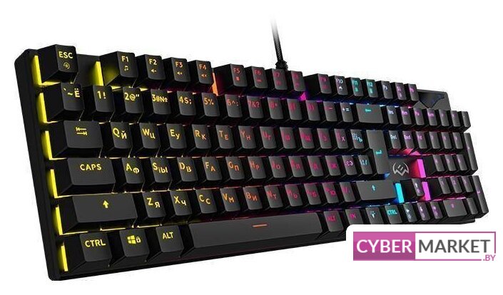 игровая для ПК, механическая, Outemu Red, ход линейный/тихие, пластик, интерфейс подключения - USB-A, кириллица: да, влагозащита, цвет черный