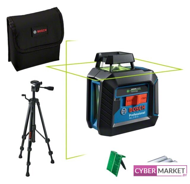 | Комплект поставки | Лазерный нивелирСтроительный штатив BT 150 Professional (0601096 B00)Лазерная визирная пластинаСумка4 батарейки 1,5 В LR6 (AA)Коробка |