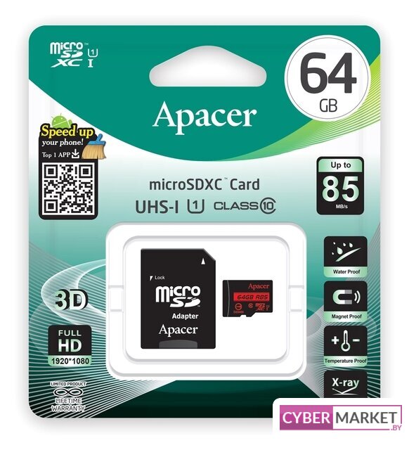 64 ГБ, класс 10, UHS-I (класс U1), адаптер