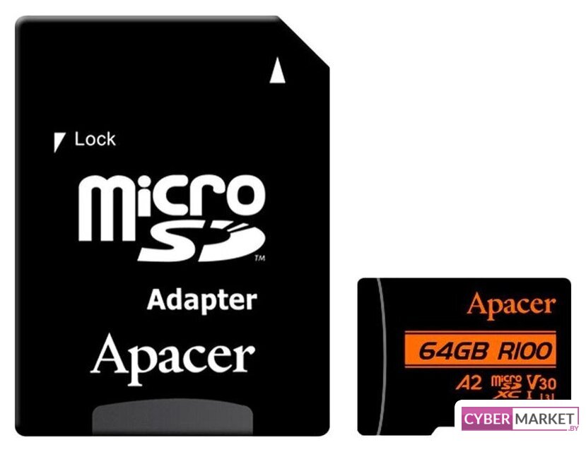 64 ГБ, класс 10, UHS-I (класс U3), V30, A1, чтение: 100 МБ/с, адаптер