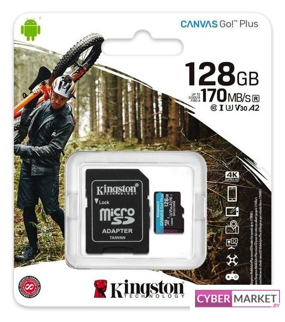 128 ГБ, класс 10, UHS-I (класс U1), чтение: 80 МБ/с, адаптер