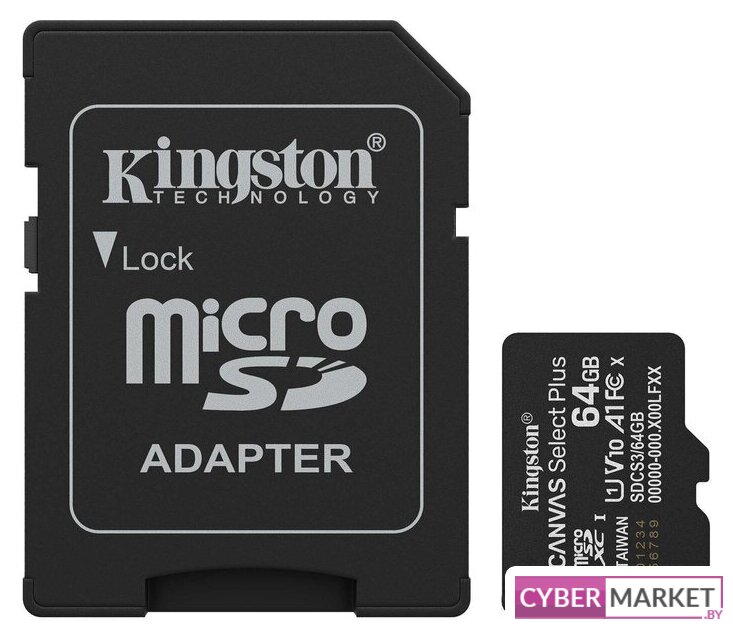 64 ГБ, класс 10, UHS-I (класс U1), V10, A1, чтение: 100 МБ/с, адаптер
