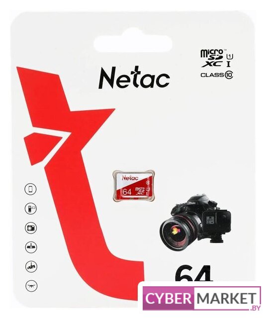 64 ГБ, класс 10, UHS-I (класс U1), чтение: 100 МБ/с, запись: 10 МБ/с, адаптер