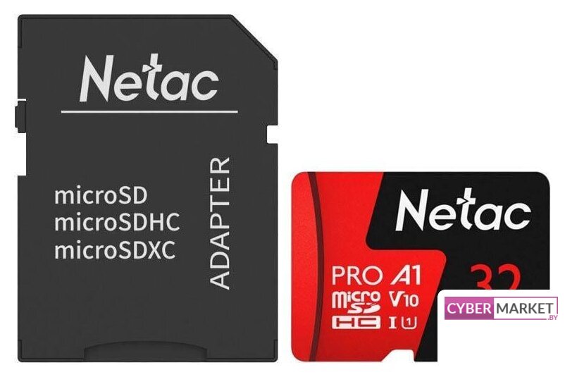 32 ГБ, класс 10, UHS-I (класс U1), чтение: 80 МБ/с, адаптер