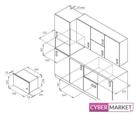 встраиваемая, микроволны (соло), объем 20 л, выходная мощность микроволн 800 Вт, управление механическое, автоприготовление, авторазмораживание, цвет серебристый