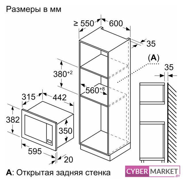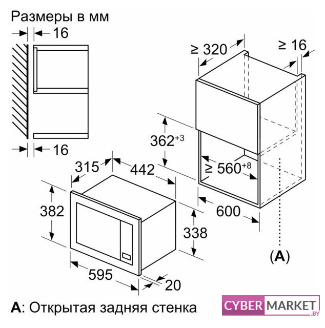 встраиваемая, микроволны и гриль, объем 20 л, выходная мощность микроволн 800 Вт, управление электронное, автоприготовление, авторазмораживание, цвет черный/нержавеющая сталь