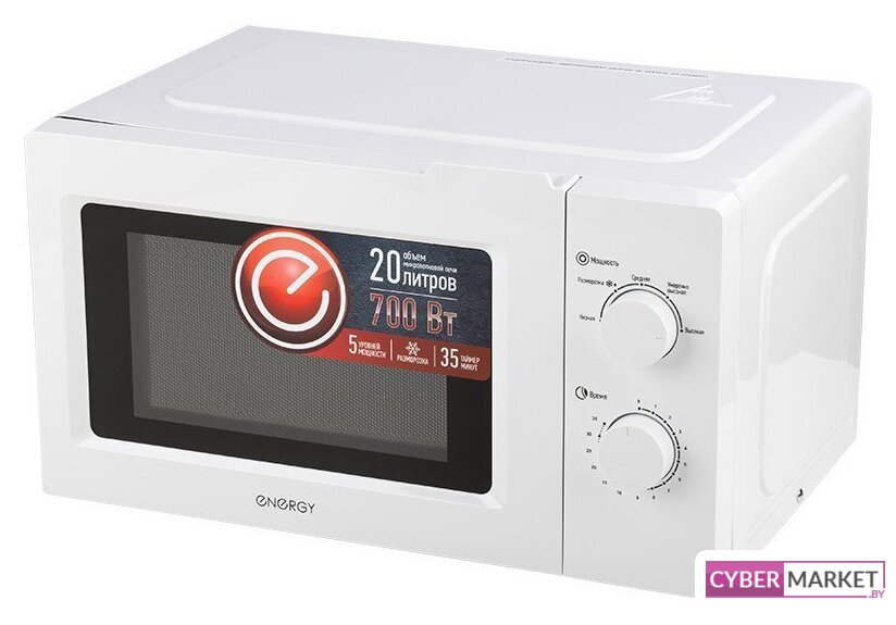 отдельностоящая, микроволны (соло), объем 20 л, выходная мощность микроволн 700 Вт, управление механическое, цвет белый