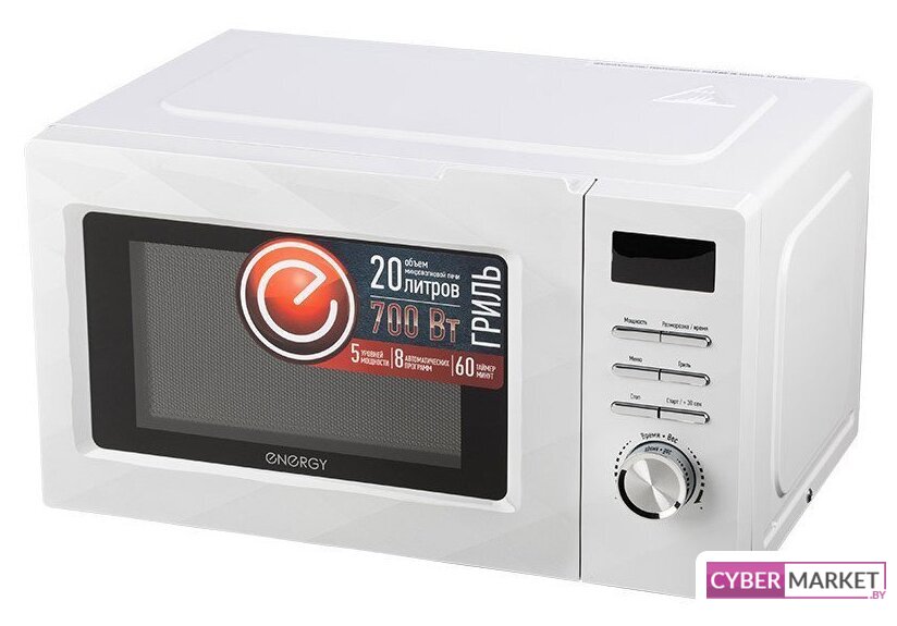 отдельностоящая, микроволны (соло), объем 20 л, выходная мощность микроволн 700 Вт, управление механическое, цвет белый