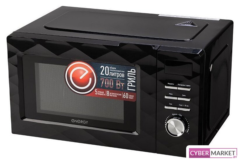 отдельностоящая, микроволны (соло), объем 20 л, выходная мощность микроволн 700 Вт, управление механическое, цвет черный