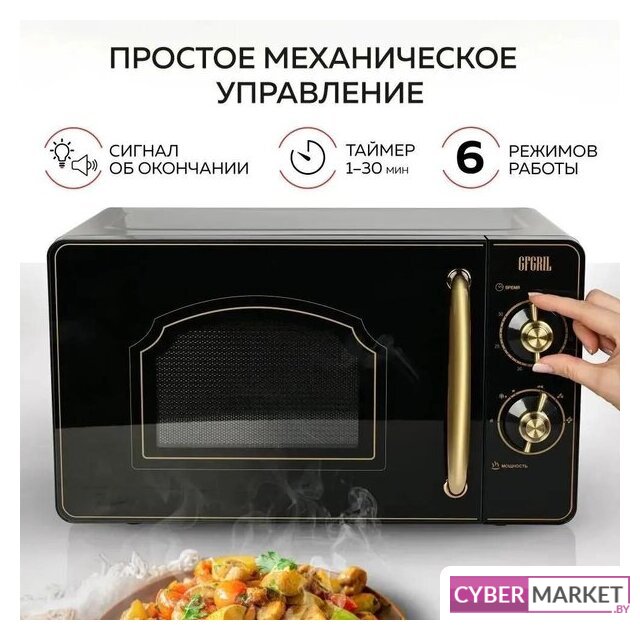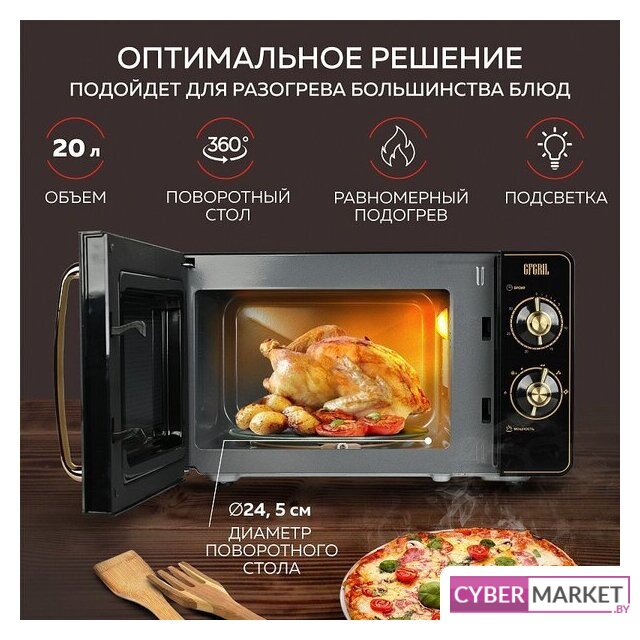 отдельностоящая, микроволны (соло), объем 23 л, выходная мощность микроволн 800 Вт, управление электронное, автоприготовление, авторазмораживание, цвет серебристый