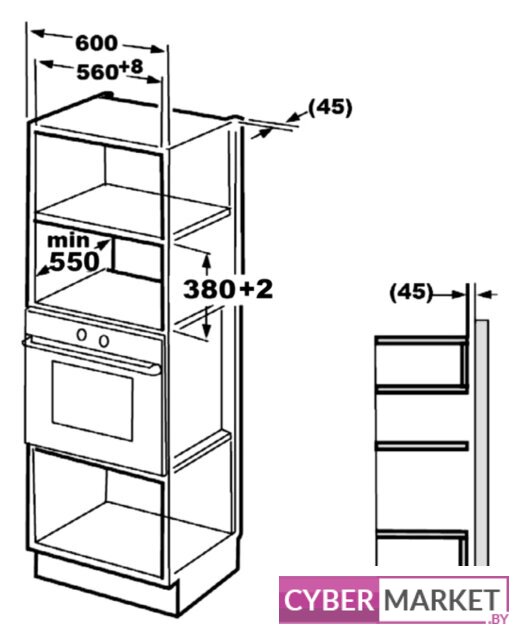 встраиваемая, микроволны и гриль, объем 20 л, выходная мощность микроволн 800 Вт, управление механическое, цвет черный
