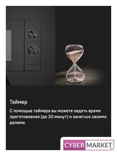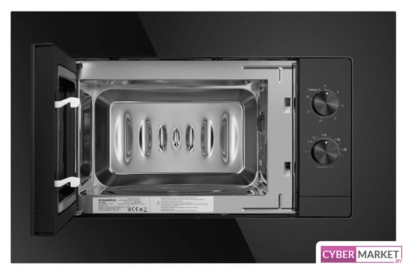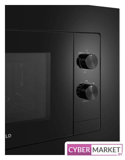 встраиваемая, микроволны (соло), объем 20 л, выходная мощность микроволн 800 Вт, управление механическое, цвет черный