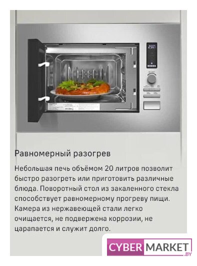 встраиваемая, микроволны и гриль, объем 20 л, выходная мощность микроволн 800 Вт, управление сенсорное, автоприготовление, авторазмораживание, цвет белый