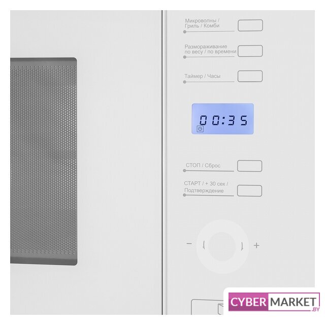 встраиваемая, микроволны и гриль, объем 25 л, выходная мощность микроволн 900 Вт, управление механическое, автоприготовление, авторазмораживание, цвет белый