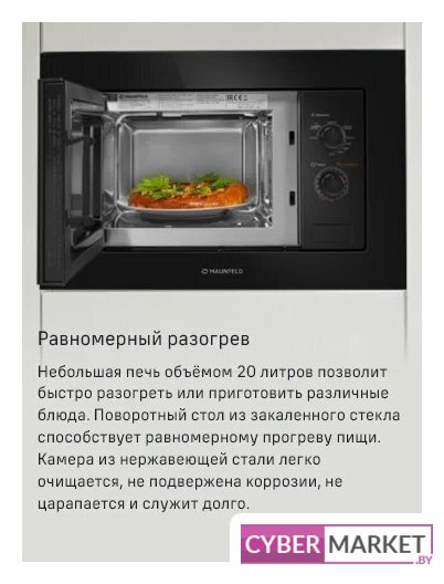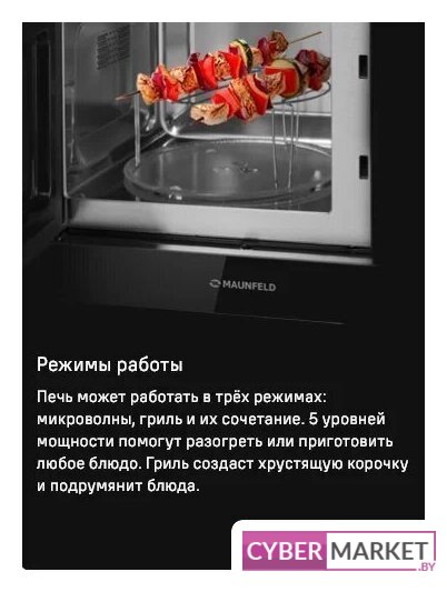 встраиваемая, микроволны и гриль, объем 20 л, выходная мощность микроволн 800 Вт, управление сенсорное, автоприготовление, цвет черный