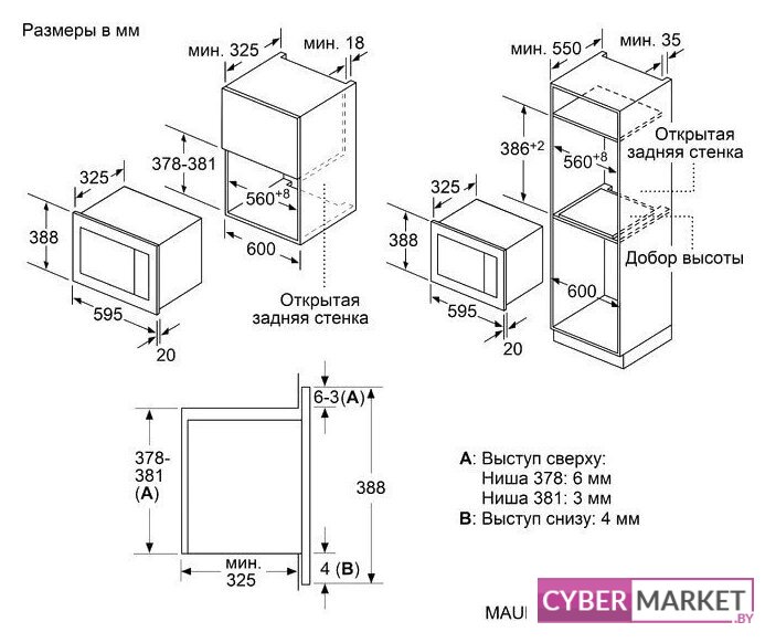 встраиваемая, микроволны и гриль, объем 20 л, выходная мощность микроволн 700 Вт, автоприготовление, авторазмораживание, цвет черный