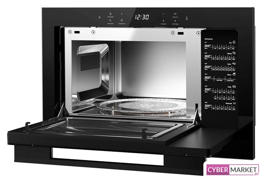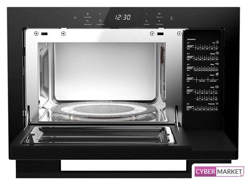 встраиваемая, микроволны и гриль, объем 23 л, выходная мощность микроволн 900 Вт, управление электронное, автоприготовление, авторазмораживание, цвет черный