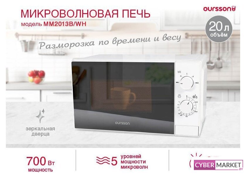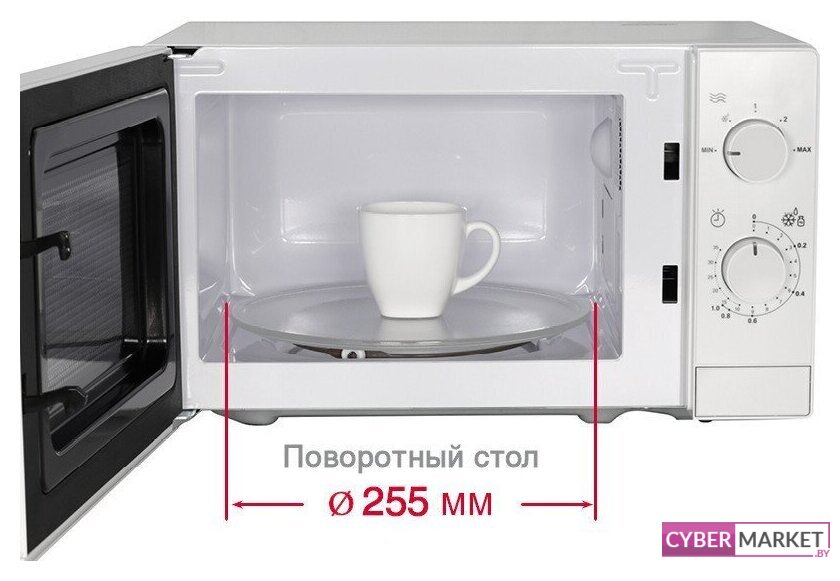 отдельностоящая, микроволны (соло), объем 20 л, выходная мощность микроволн 800 Вт, управление механическое, цвет белый