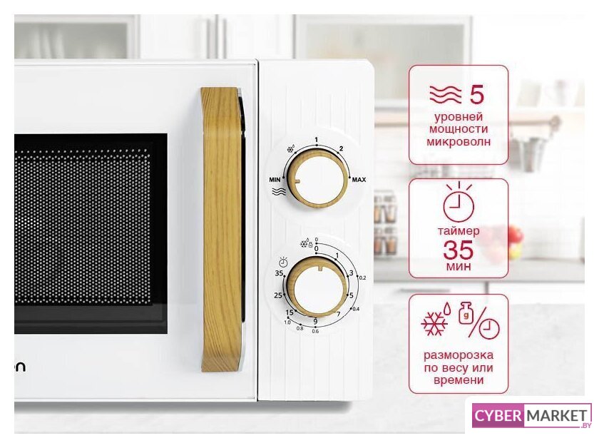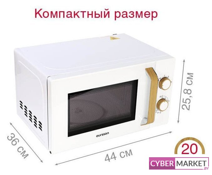 отдельностоящая, микроволны (соло), объем 20 л, выходная мощность микроволн 700 Вт, управление механическое, цвет белый