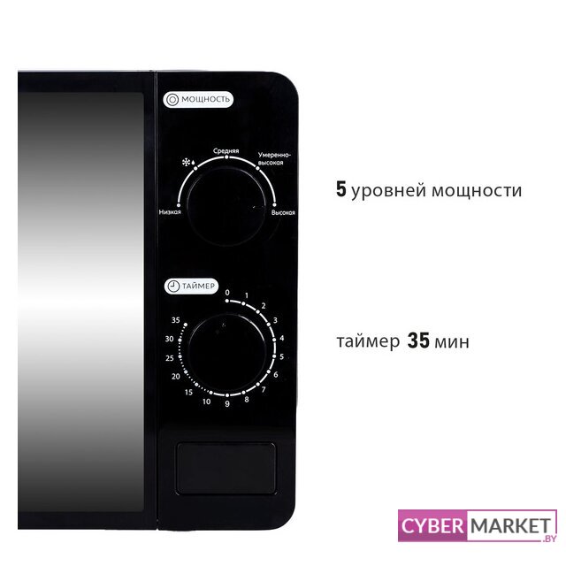 отдельностоящая, микроволны (соло), объем 20 л, выходная мощность микроволн 700 Вт, управление механическое, цвет черный