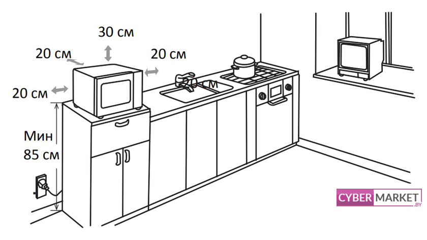 отдельностоящая, микроволны (соло), объем 20 л, выходная мощность микроволн 700 Вт, управление механическое, цвет черный
