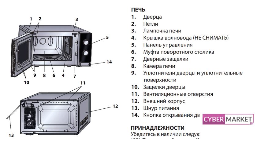 отдельностоящая, микроволны (соло), объем 20 л, выходная мощность микроволн 700 Вт, управление механическое, цвет графит