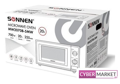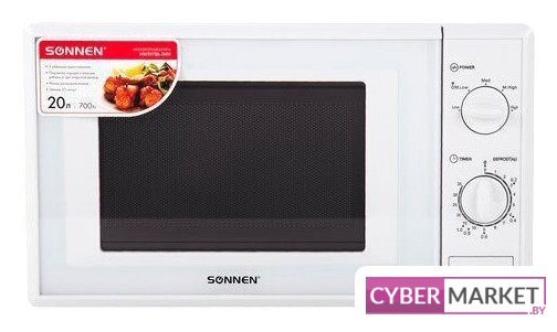 отдельностоящая, микроволны (соло), объем 20 л, выходная мощность микроволн 700 Вт, управление механическое, цвет белый