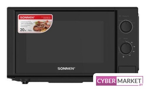 отдельностоящая, микроволны (соло), объем 20 л, выходная мощность микроволн 700 Вт, управление механическое, цвет черный