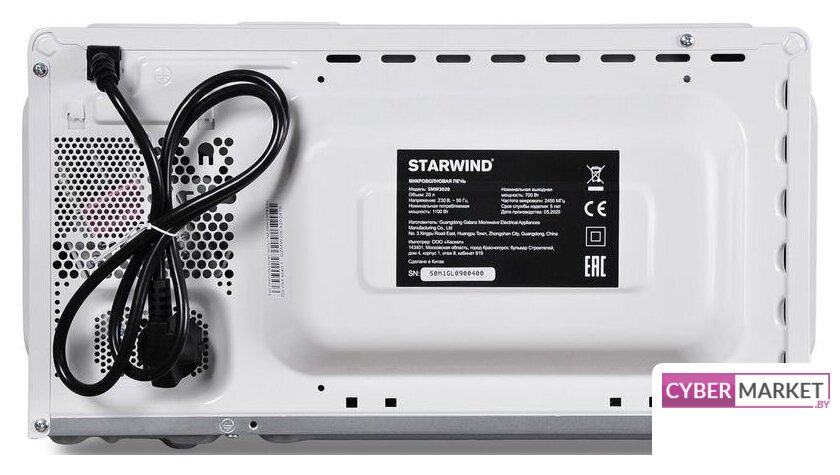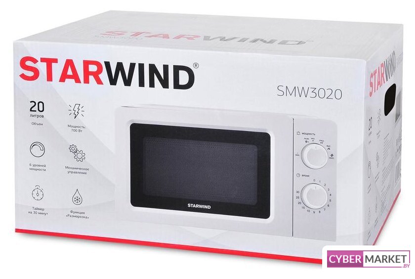 отдельностоящая, микроволны (соло), объем 20 л, выходная мощность микроволн 700 Вт, управление механическое, цвет белый