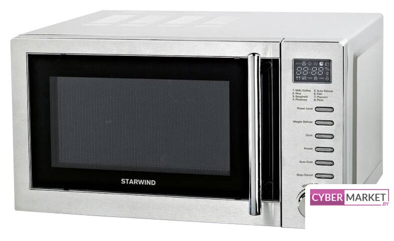 отдельностоящая, микроволны (соло), объем 20 л, выходная мощность микроволн 800 Вт, управление электронное, автоприготовление, цвет черный/зеркальный/серебристый