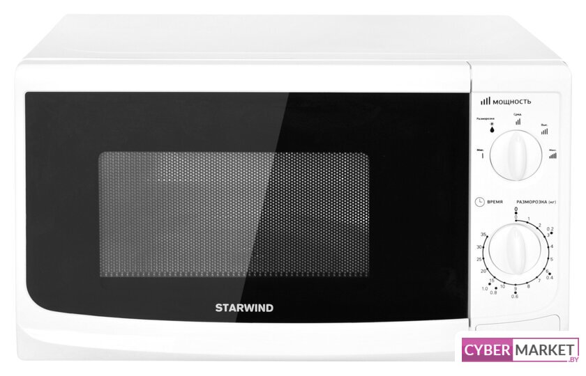 отдельностоящая, микроволны (соло), объем 20 л, выходная мощность микроволн 800 Вт, управление механическое, цвет белый