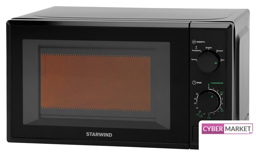 отдельностоящая, микроволны (соло), объем 20 л, выходная мощность микроволн 700 Вт, управление механическое, цвет черный