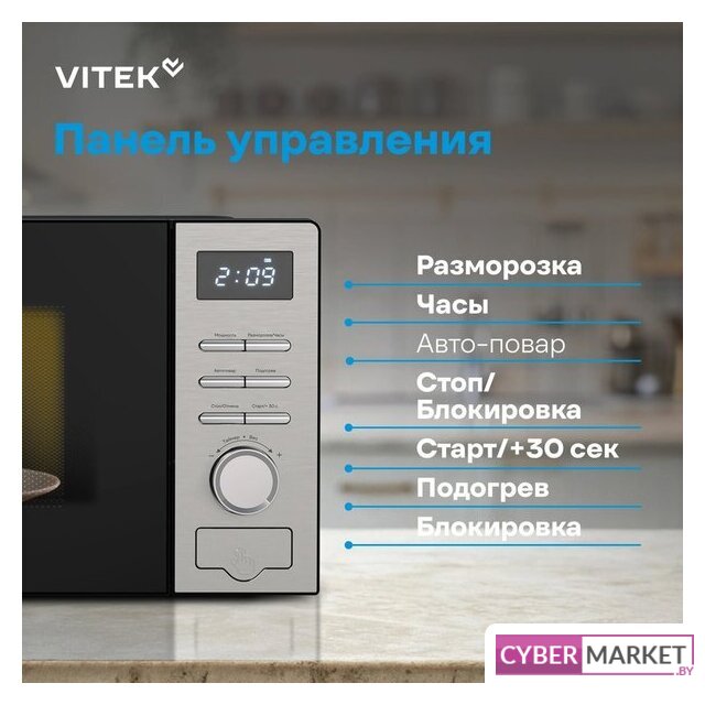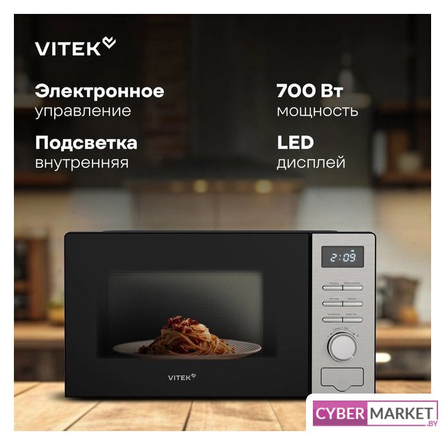 отдельностоящая, микроволны (соло), объем 23 л, выходная мощность микроволн 800 Вт, управление электронное, автоприготовление, авторазмораживание, цвет нержавеющая сталь/черный