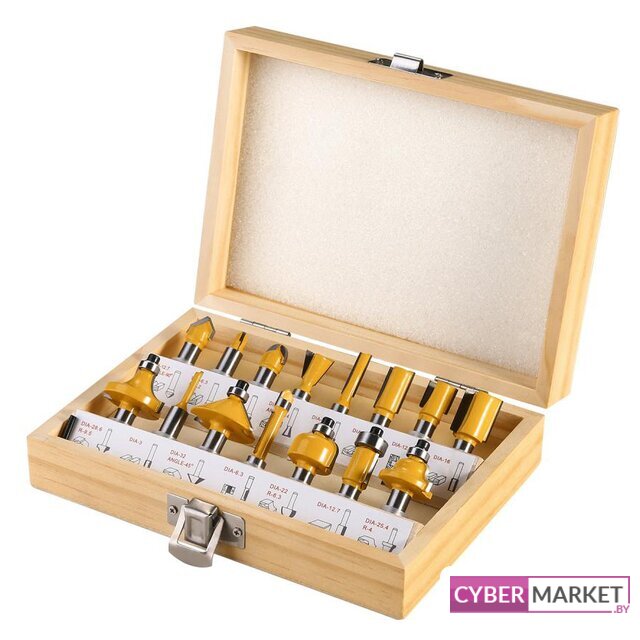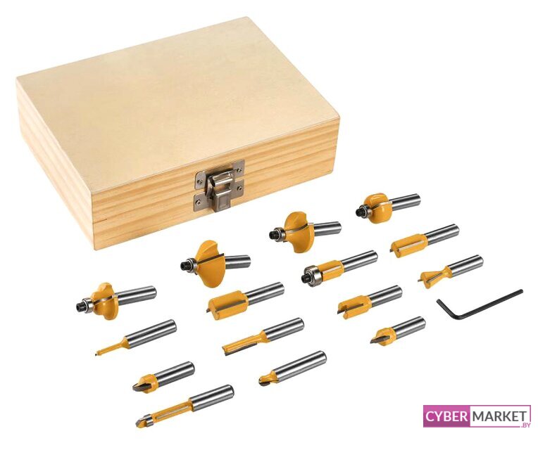 | Комплектация | Прямая пазовая 3,6,12,12.7,16мм - 5 штГалтельная фреза R3.2мм, R6.3мм - 2 штV-образная 90о 12.7мм - 1 штЛасточкин хвост 12.7мм - 1 штПанельная пилотная 6.3мм - 1 штОбгонная 12.7мм - 1 штКалевочная R9.5мм - 1 штКромочная 45о 32мм - 1 штПазовая R6.3мм - 1 штФасочная R4мм - 1 штШестигранный ключ 2,5мм - 1 штКейс |