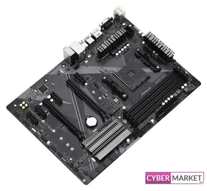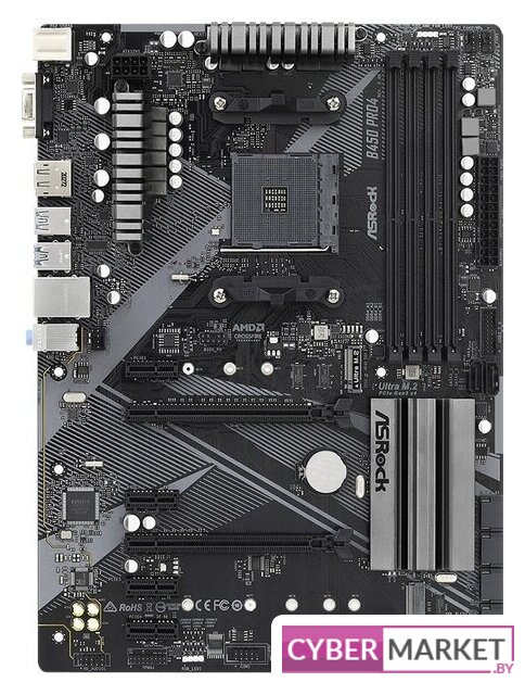 mATX, сокет AMD AM4, чипсет AMD B450, память 4xDDR4, слоты: 2xPCIe x16, 1xPCIe x1, 2xM.2